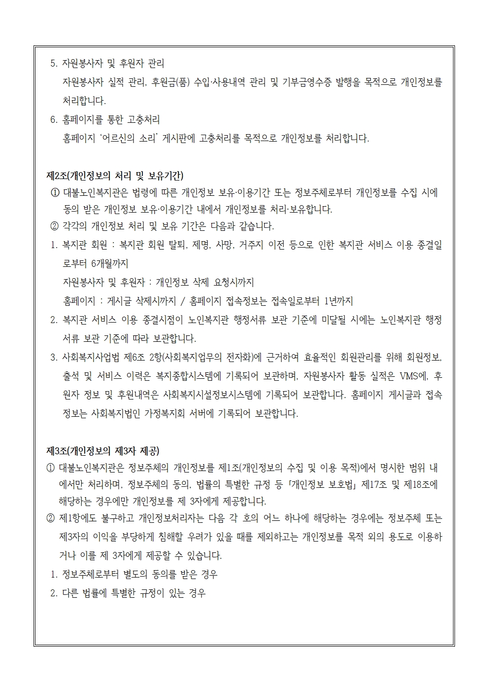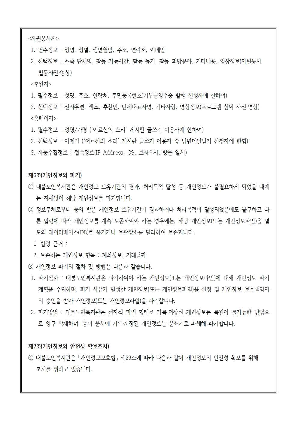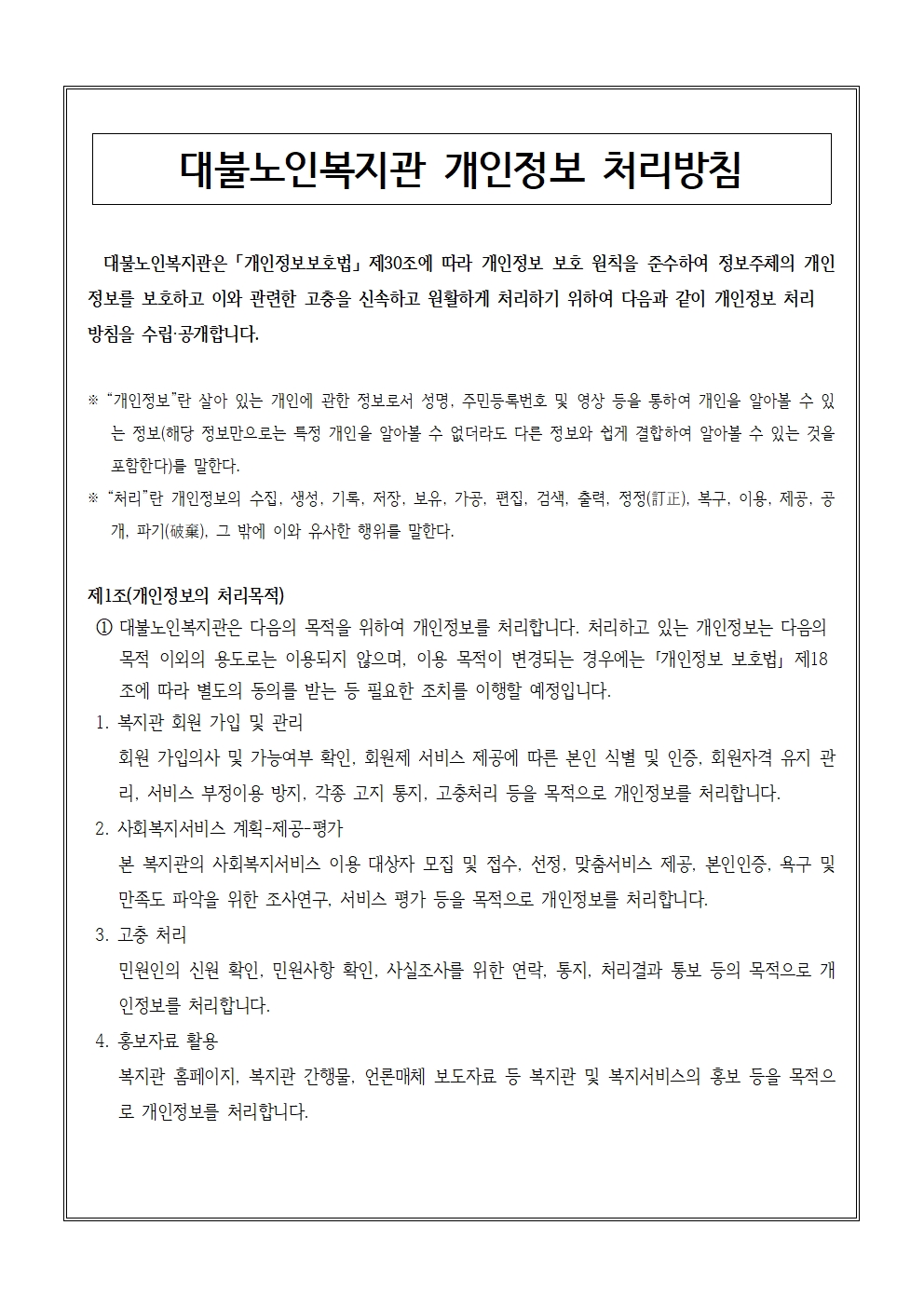 대불노인복지관 개인정보처리방침(2026년 개정)
