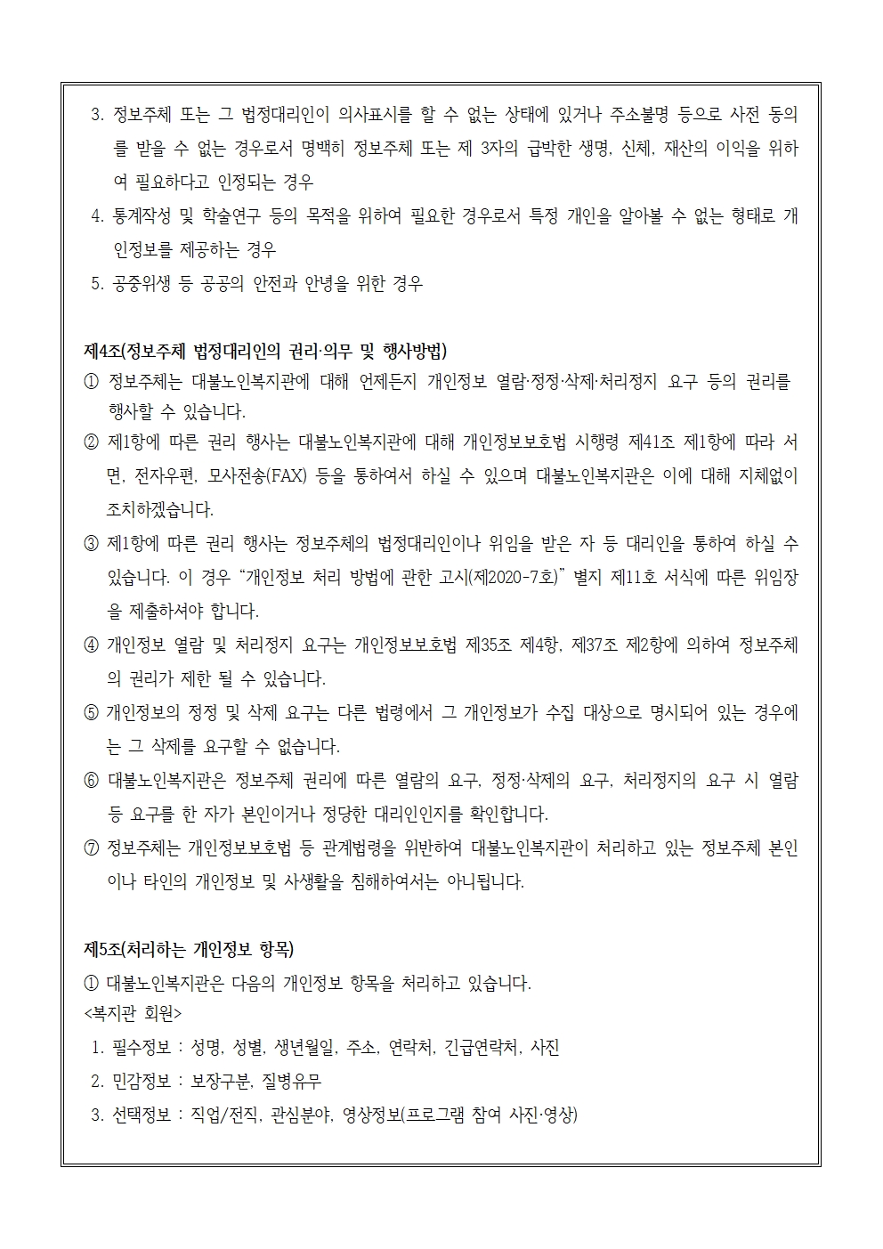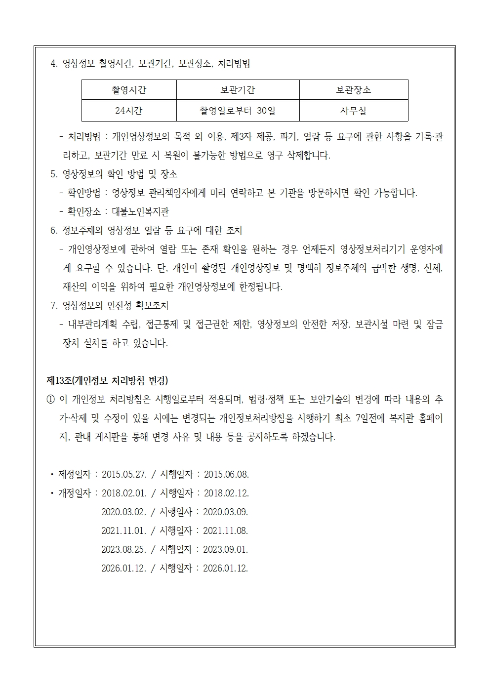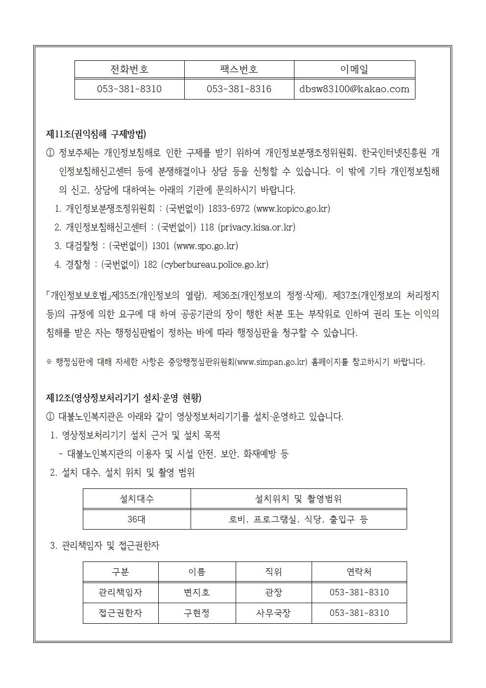 대불노인복지관 개인정보처리방침(2026년 개정)