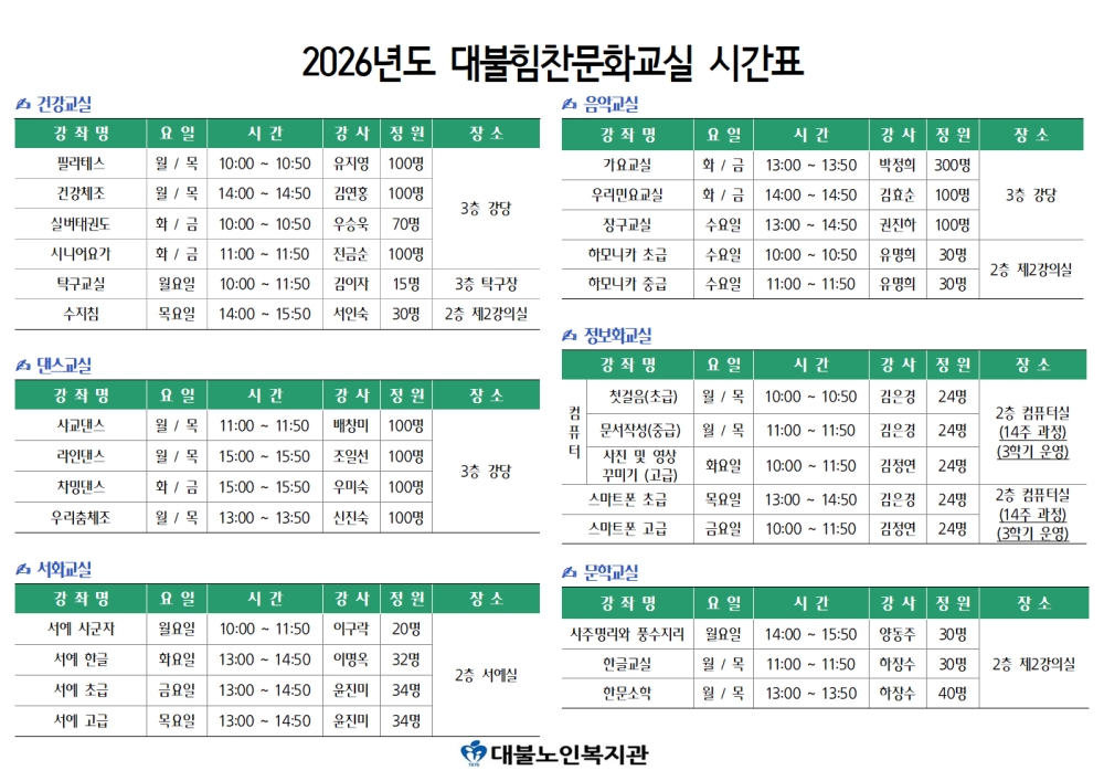 대불노인복지관 개인정보처리방침(2026년 개정)